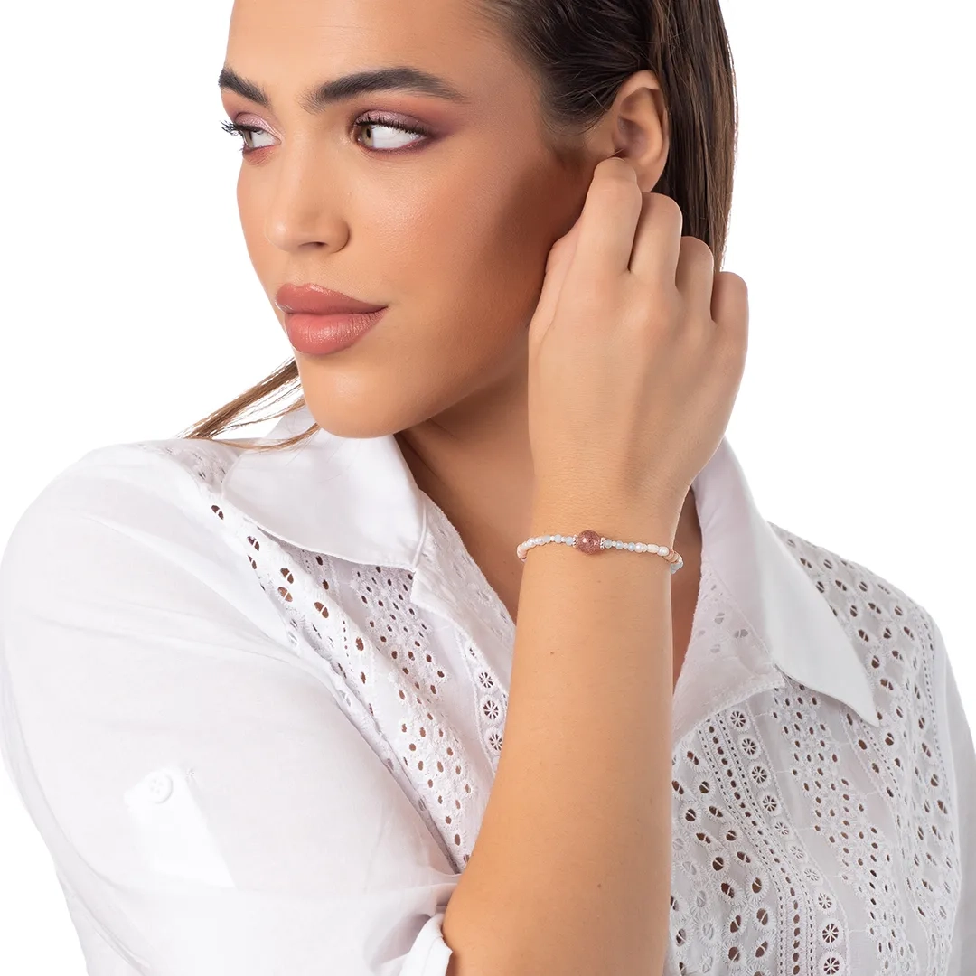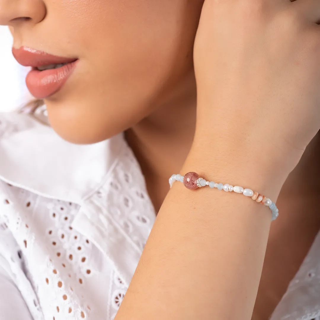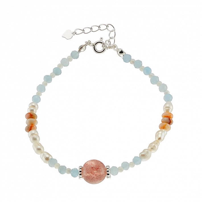 Oxzen ασημένιο βραχιόλι, με ημιπολύτιμες ορυκτές πέτρες