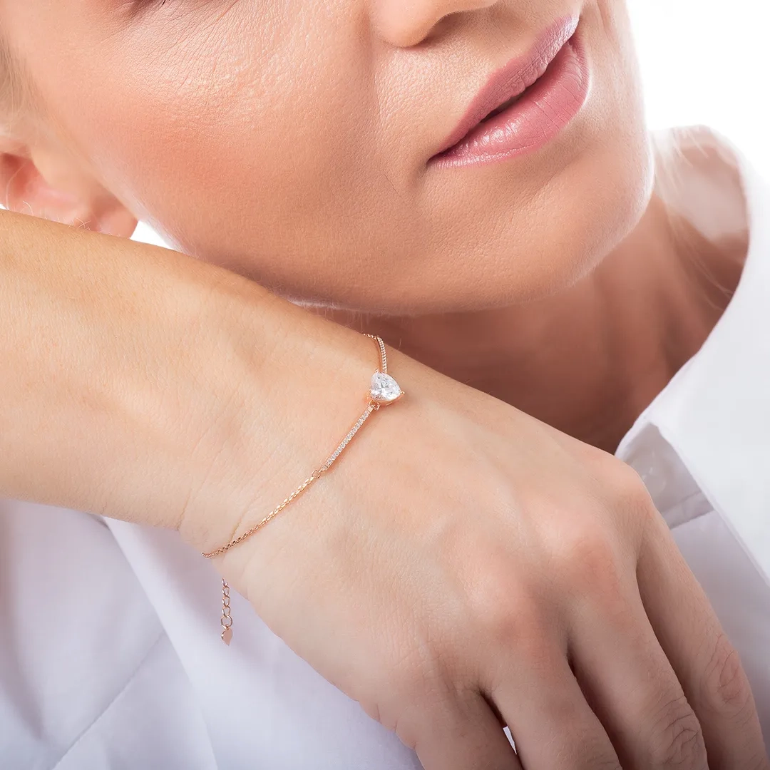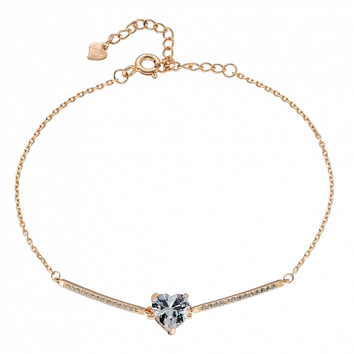 Oxzen ασημένιο βραχιόλι με καρδιά και λευκά ζιργκόν