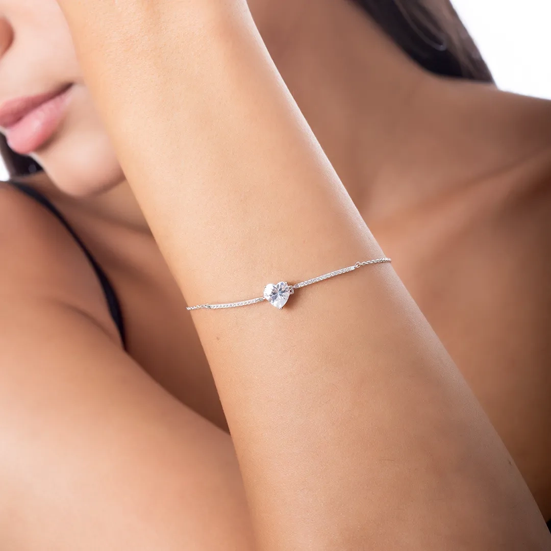 Oxzen ασημένιο βραχιόλι με καρδιά και λευκά ζιργκόν