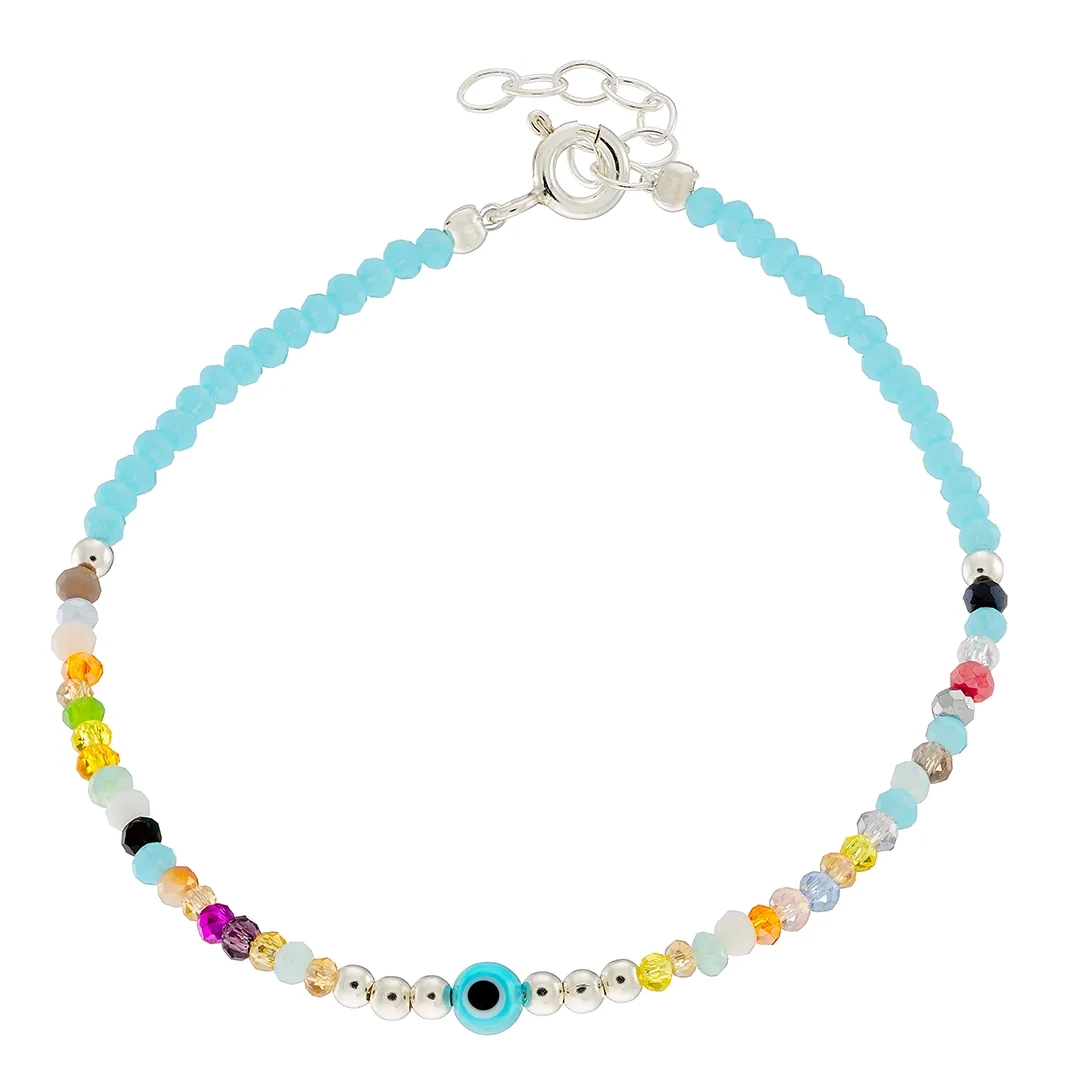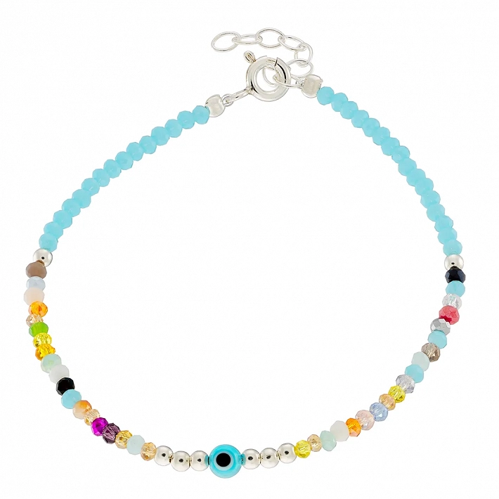 Oxzen ασημένιο βραχιόλι με τυρκουάζ και χρωματιστές πέτρες