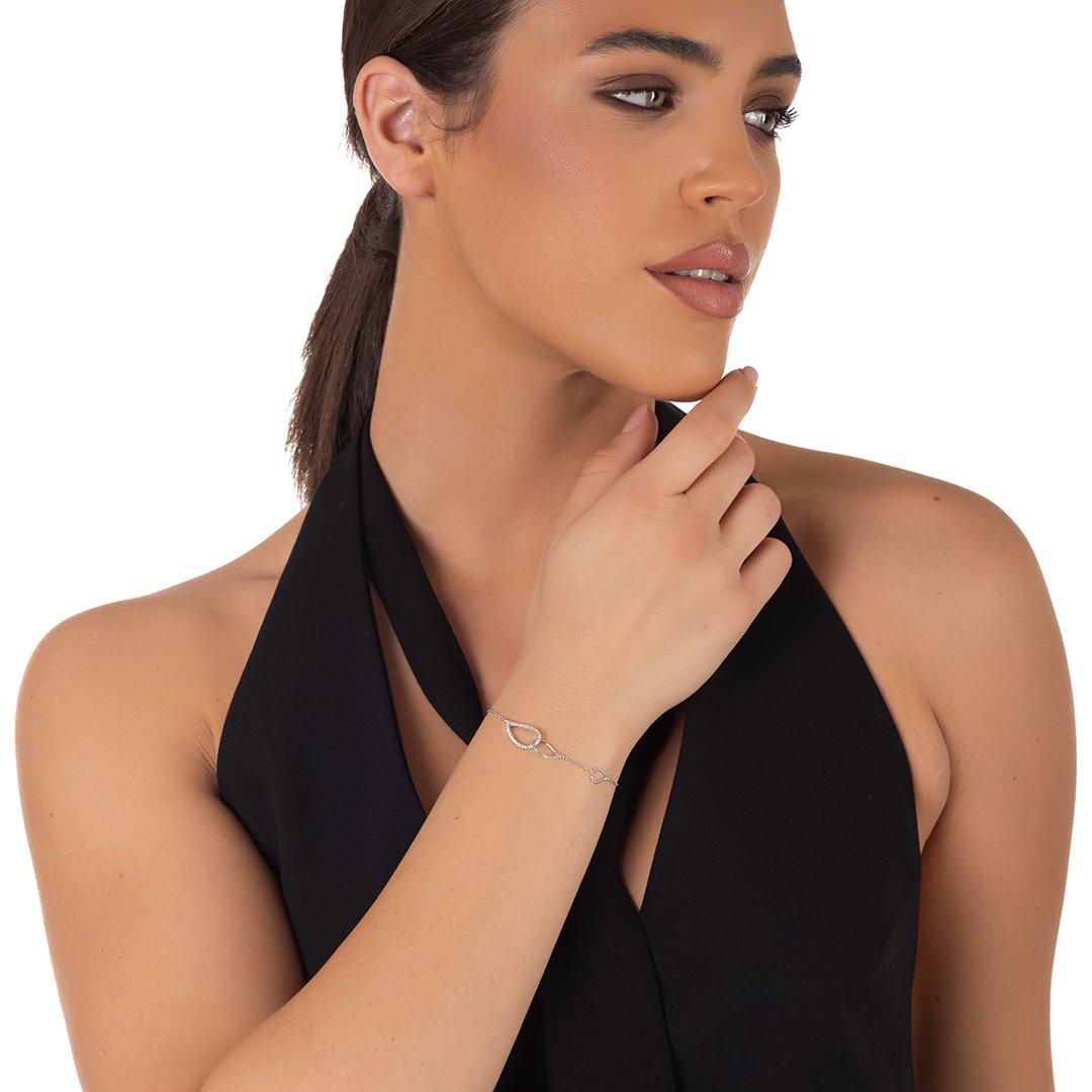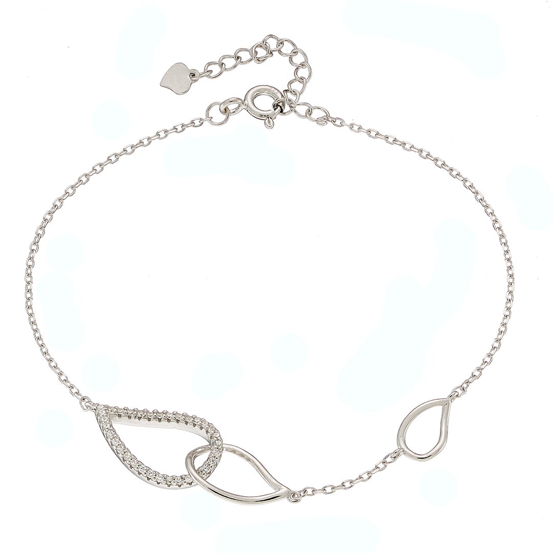 Oxzen ασημένιο βραχιόλι σταγόνα με λευκά ζιργκόν