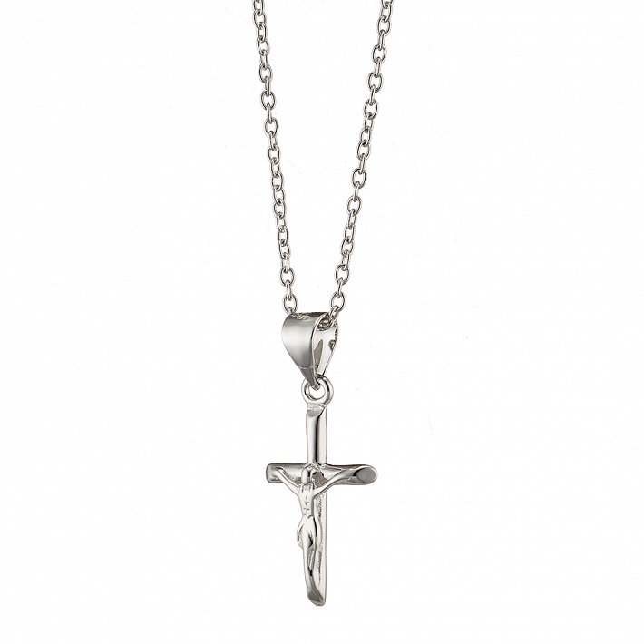 Oxzen ασημένιος ανδρικός σταυρός με αλυσίδα με εσταυρωμένο