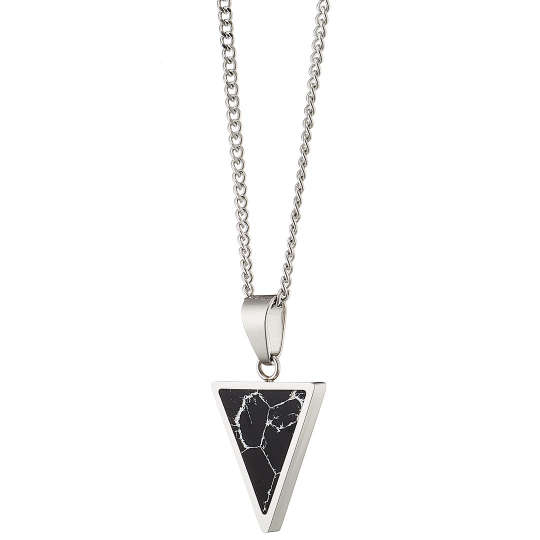 Oxzen ατσάλινο ανδρικό κολιέ με τριγωνική ορυκτη πέτρα
