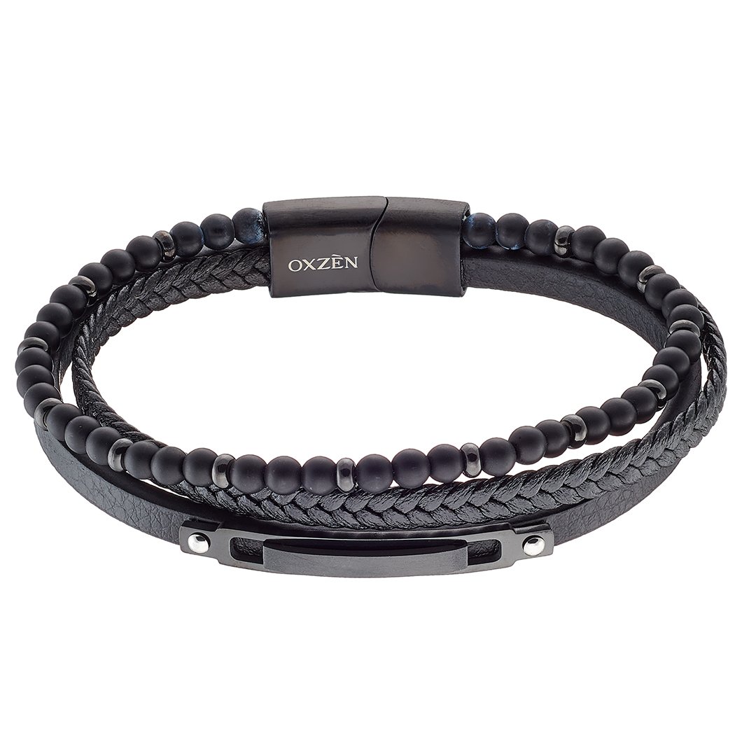 Oxzen ατσάλινο ανδρικό βραχιόλι με δέρμα
