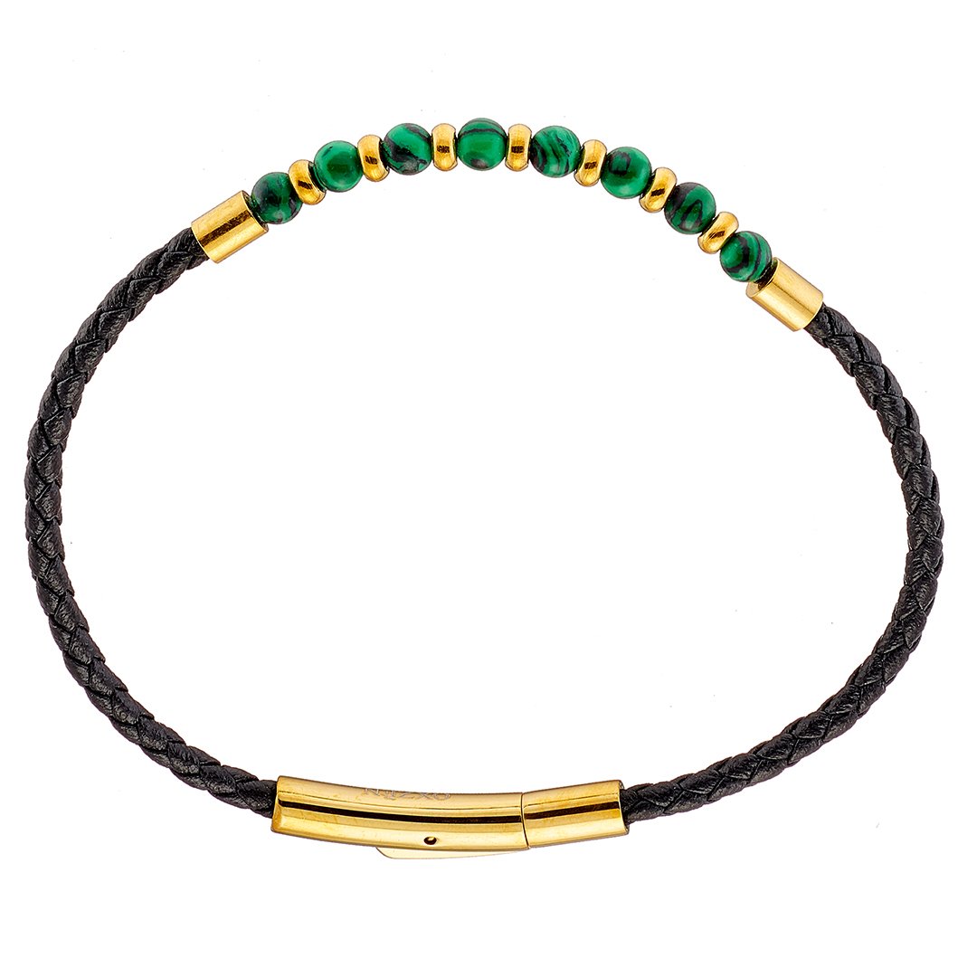 Βραχιόλι ατσάλινο με δέρμα μαύρο και κούμπωμα μαγνήτη