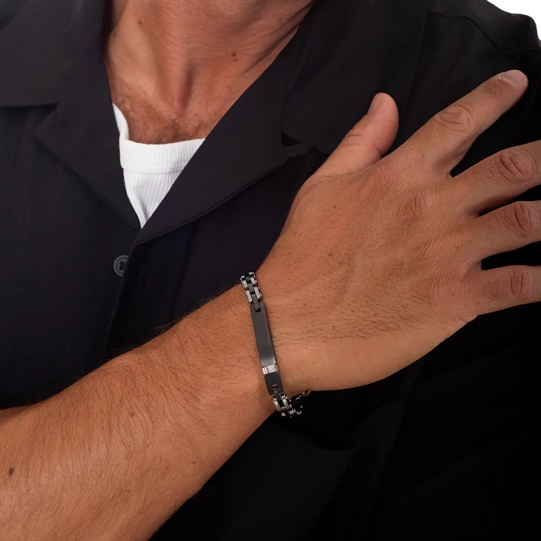 Χειροπέδα ανδρική ατσάλι σε ασημί με μαύρο