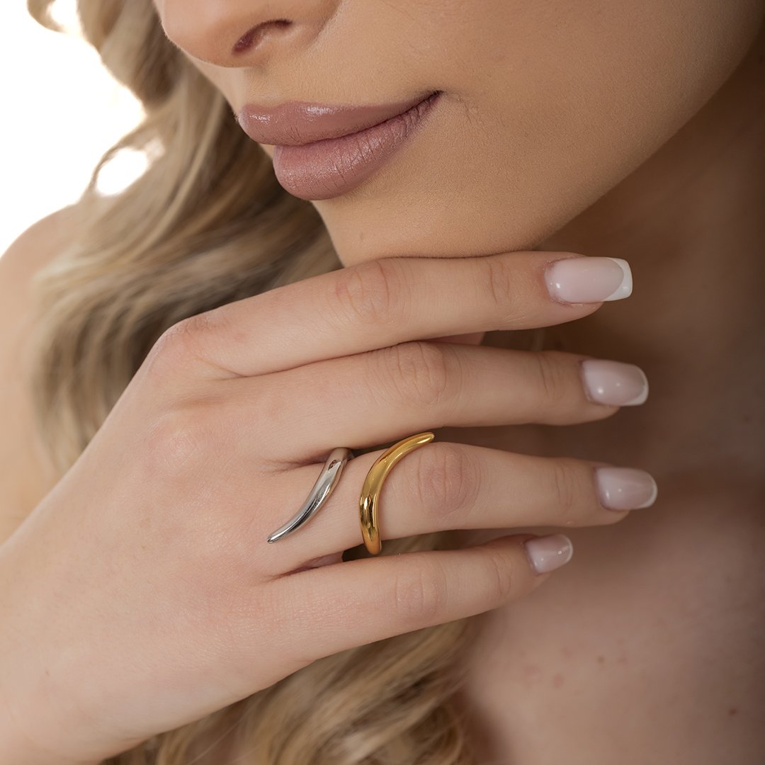 Oxzen ατσάλινο ασημόχρυσο δαχτυλίδι