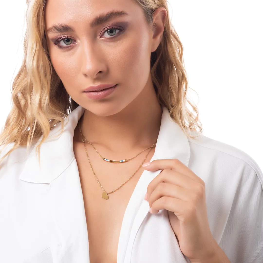Κολιέ ατσάλινο με ματάκι φίλντισι