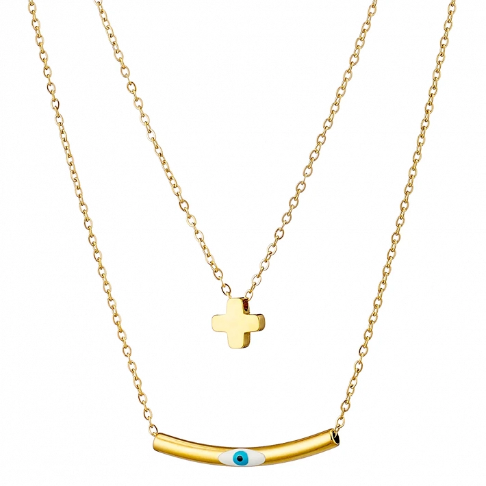 Κολιέ ατσάλινο με ματάκι φίλντισι