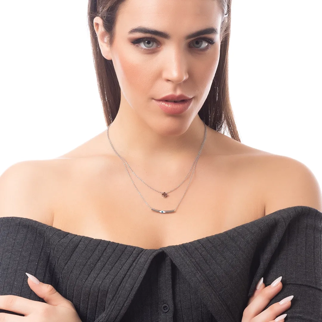 Κολιέ ατσάλινο με ματάκι φίλντισι