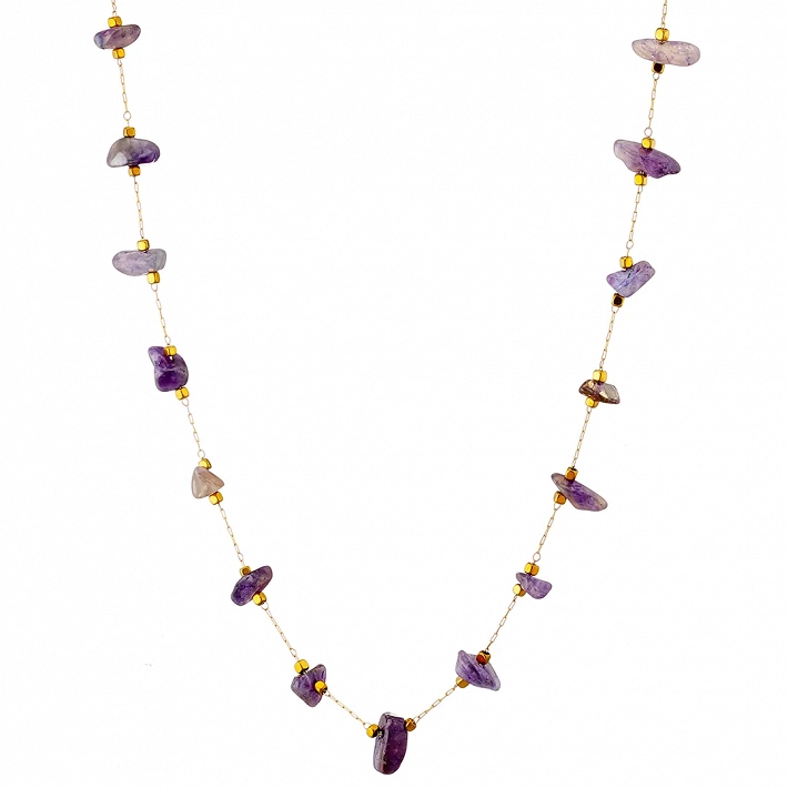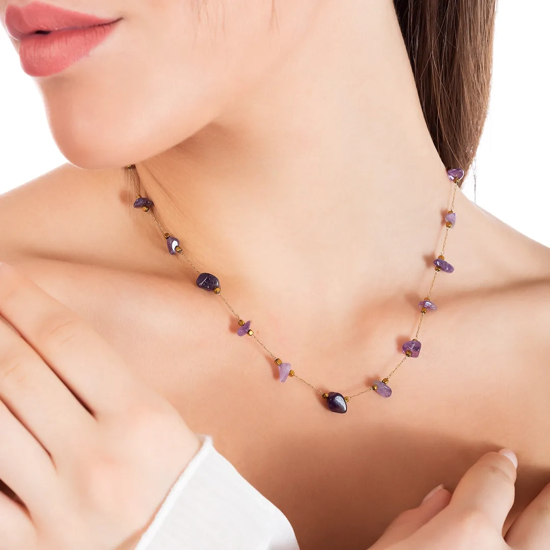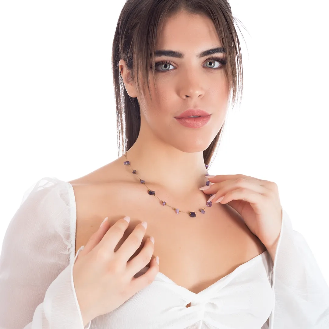 Γυναικείο ατσάλινο κολιέ με ακανόνιστους μωβ ημιπολύτιμους λίθους