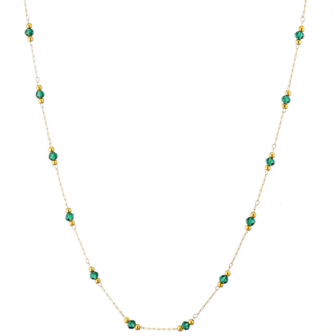 Oxzen ατσάλινο κολιέ επιχρυσωμένο με ημιπολύτιμες πράσινες πέτρες