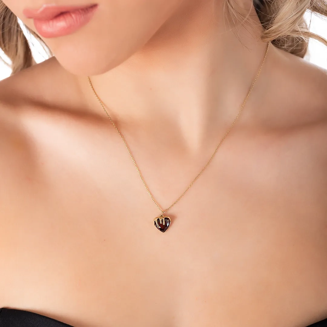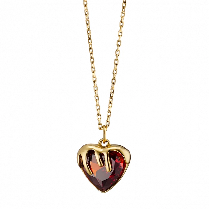 Oxzen ατσάλινο κολιέ καρδιά με κόκκινη πέτρα ζιργκόν