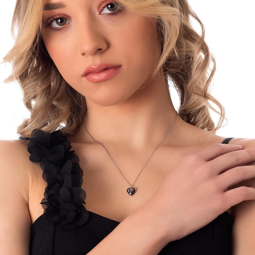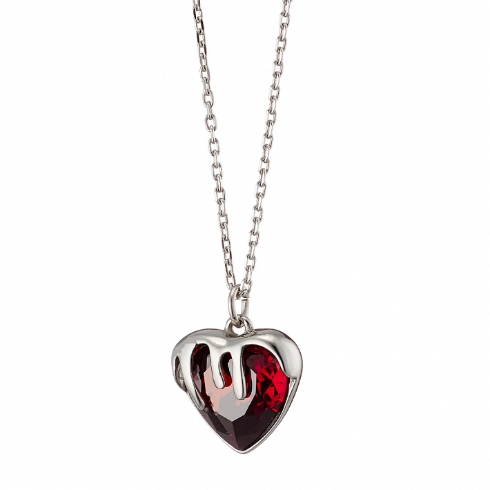 Oxzen ατσάλινο κολιέ καρδιά με κόκκινη πέτρα ζιργκόν