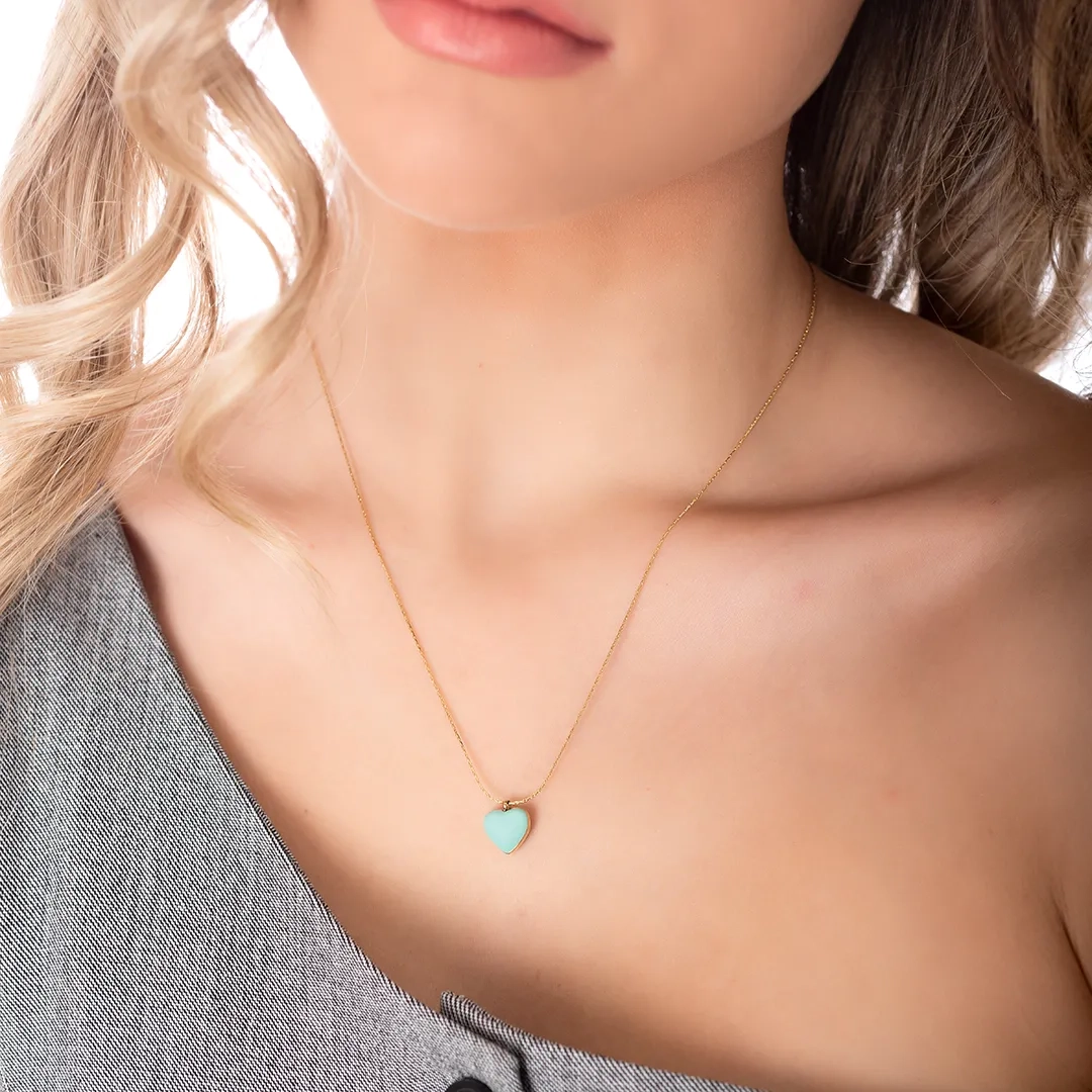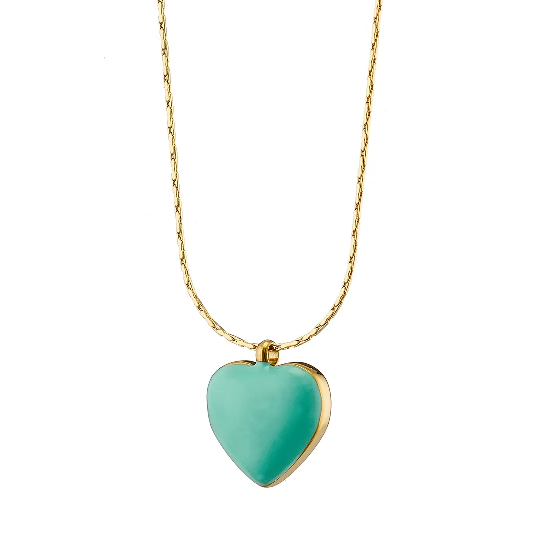 Oxzen ατσάλινο κολιέ καρδιά με τιρκουάζ πέτρα