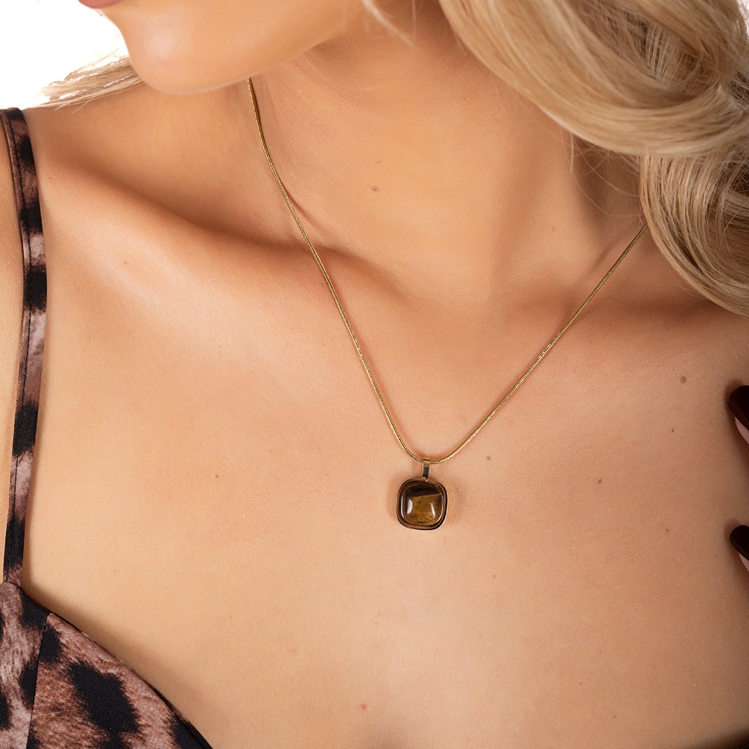 Oxzen ατσάλινο κολιέ με πέτρα μάτι της τίγρης