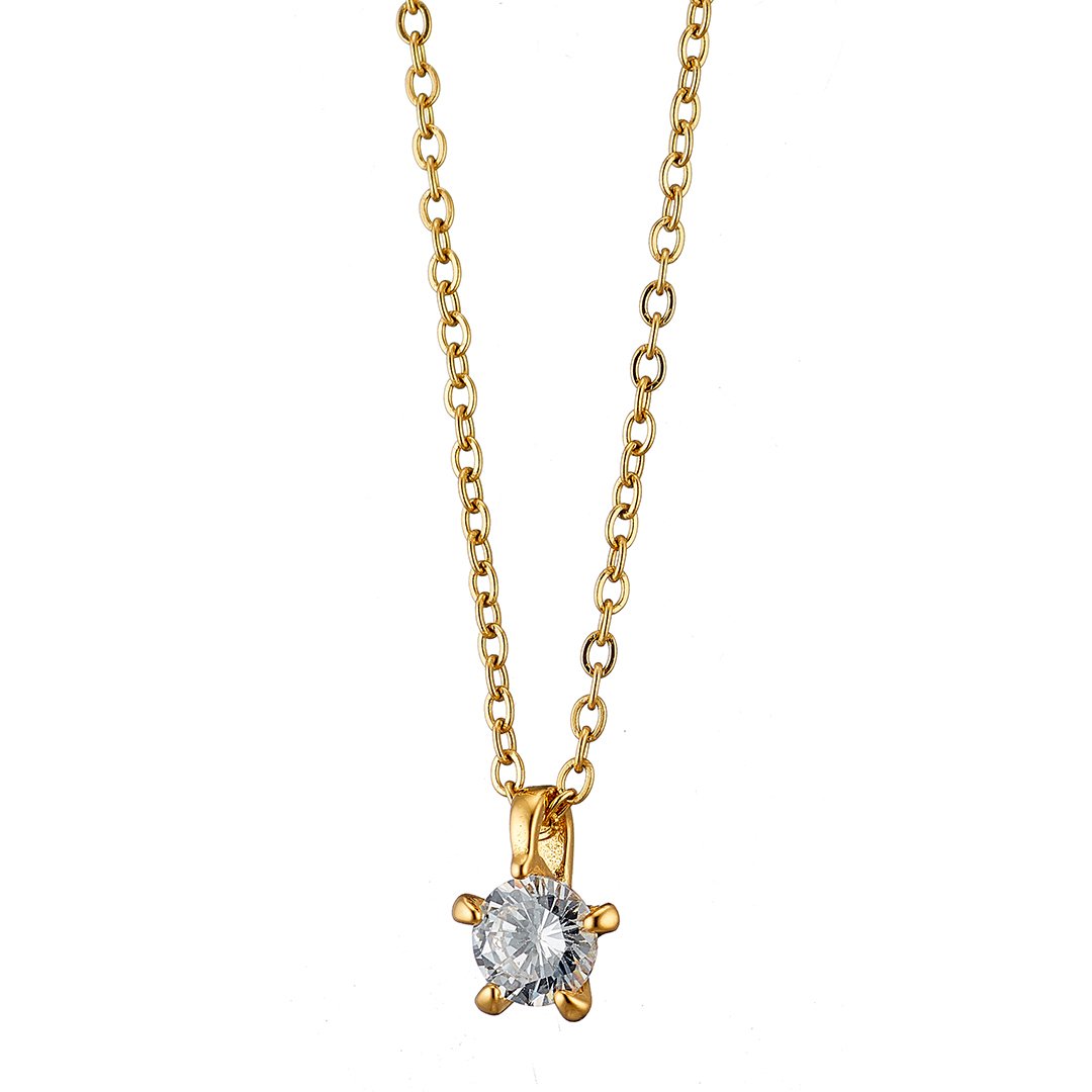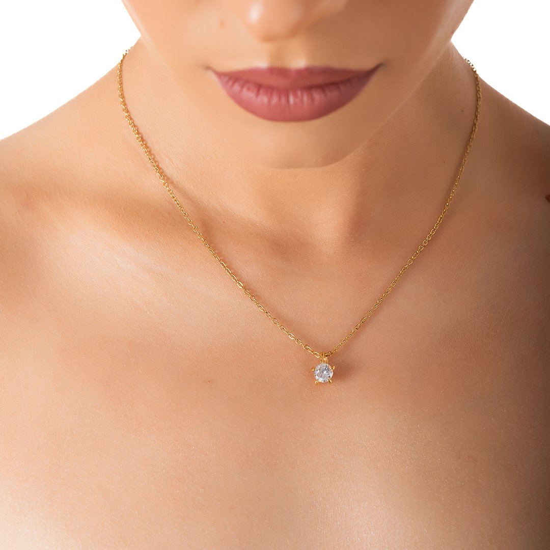 Oxzen ατσάλινο κολιέ μονόπετρο με ζιργκόν