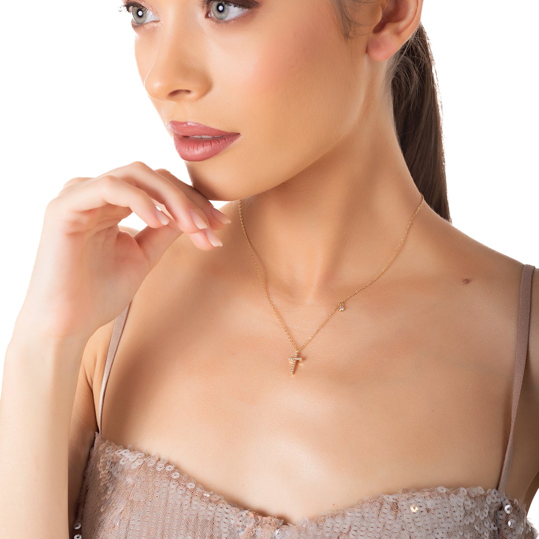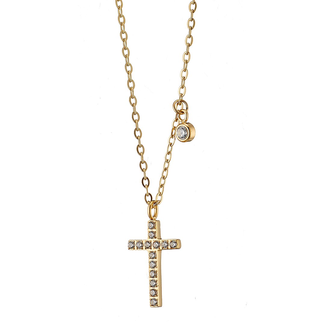 Oxzen ατσάλινο κολιέ σταυρός με ζιργκόν