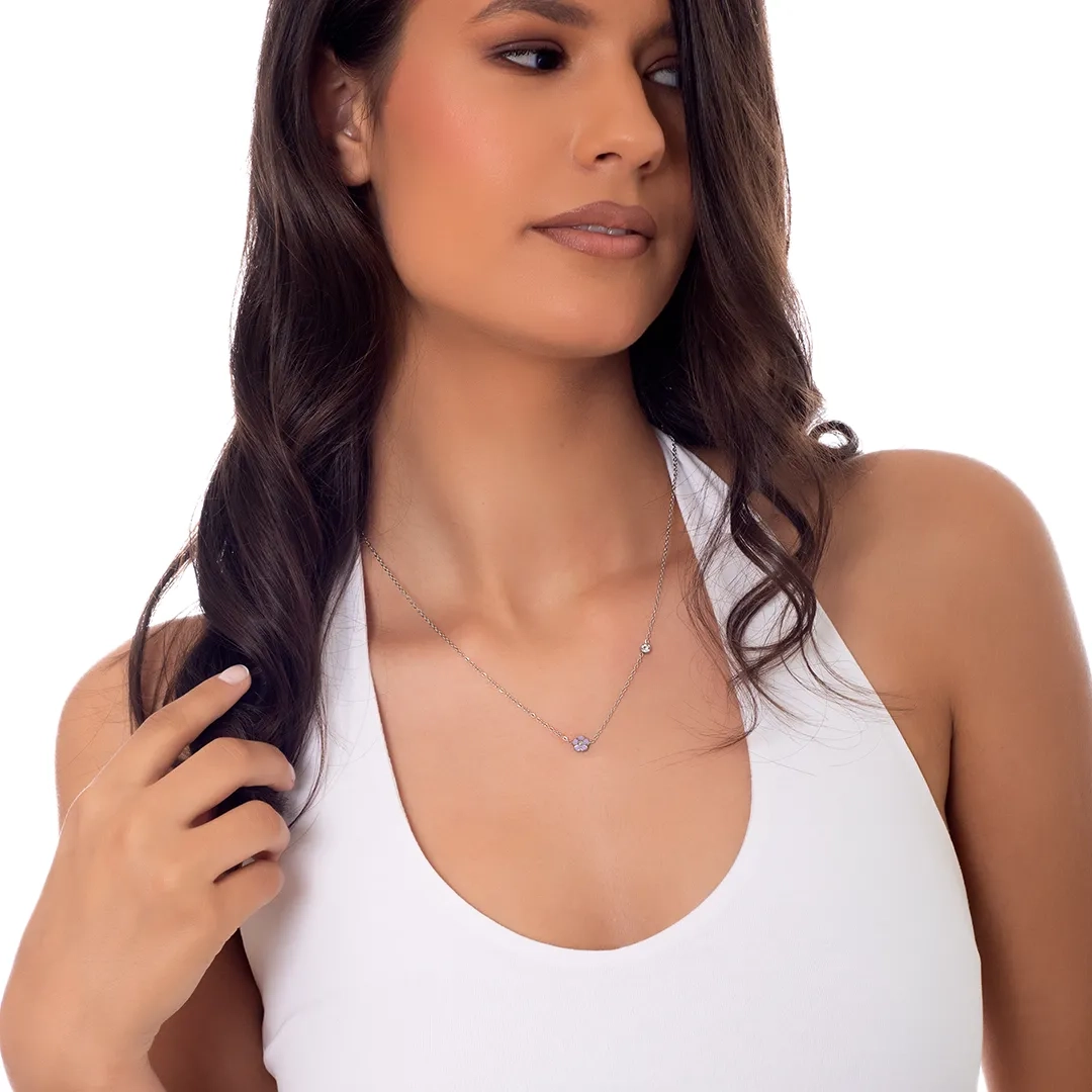 Oxzen κολιέ ασημένιο γατούλα με λευκά ζιργκόν