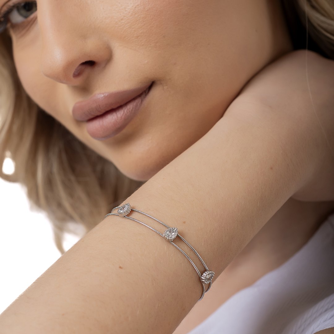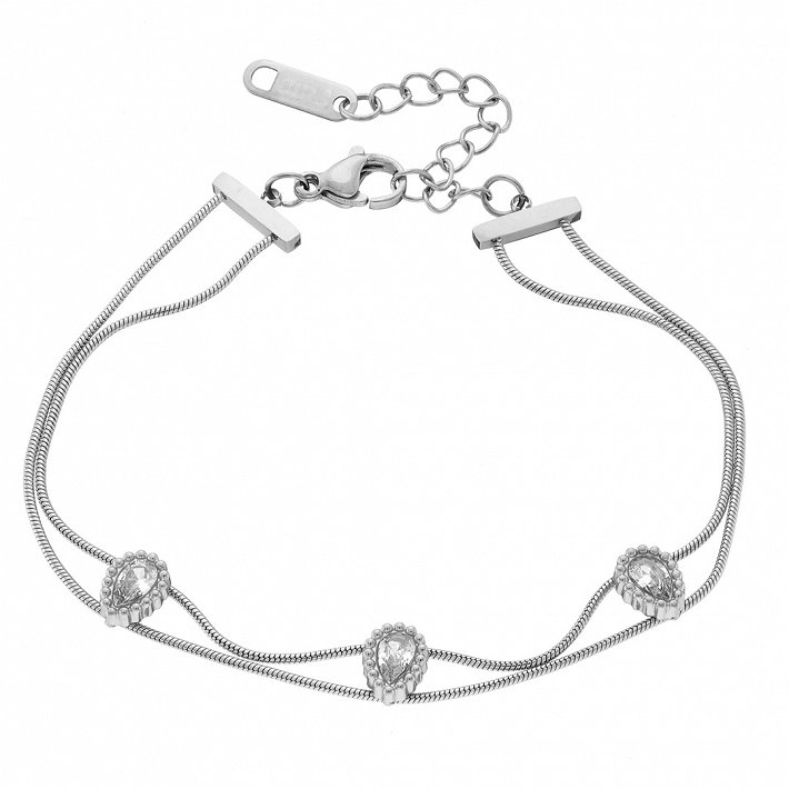 Oxzen ατσάλινο βραχιόλι διπλό με ζιργκόν