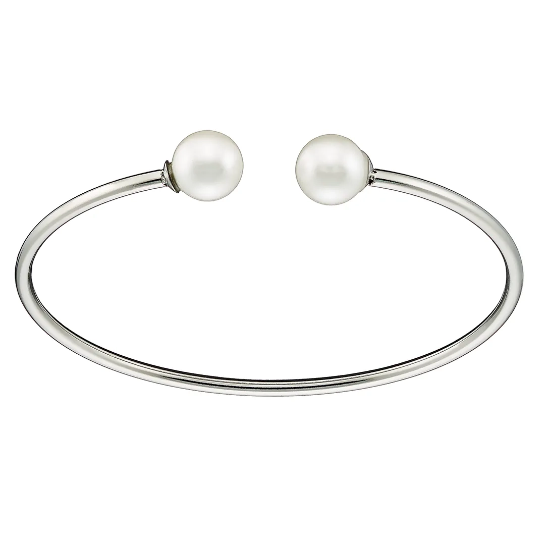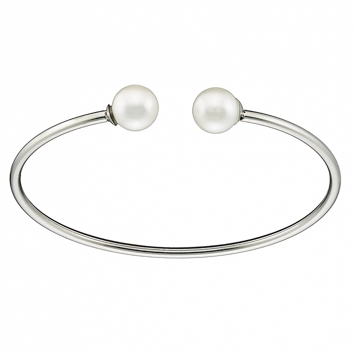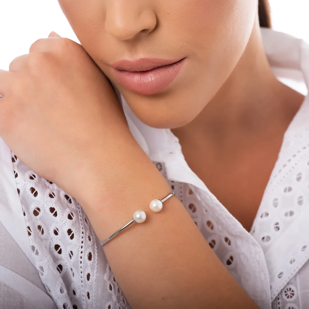 Oxzen ατσάλινο βραχιόλι εύκαμπτο με δύο πέρλες στις άκρες