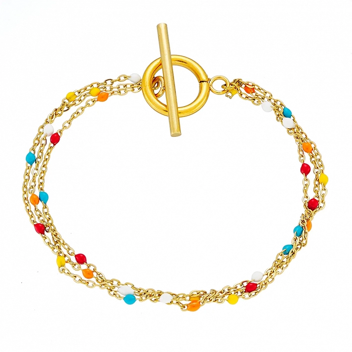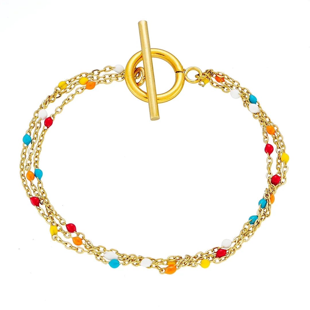 Oxzen ατσάλινο βραχιόλι επιχρυσωμένο διπλό με χρωματιστές πέτρες