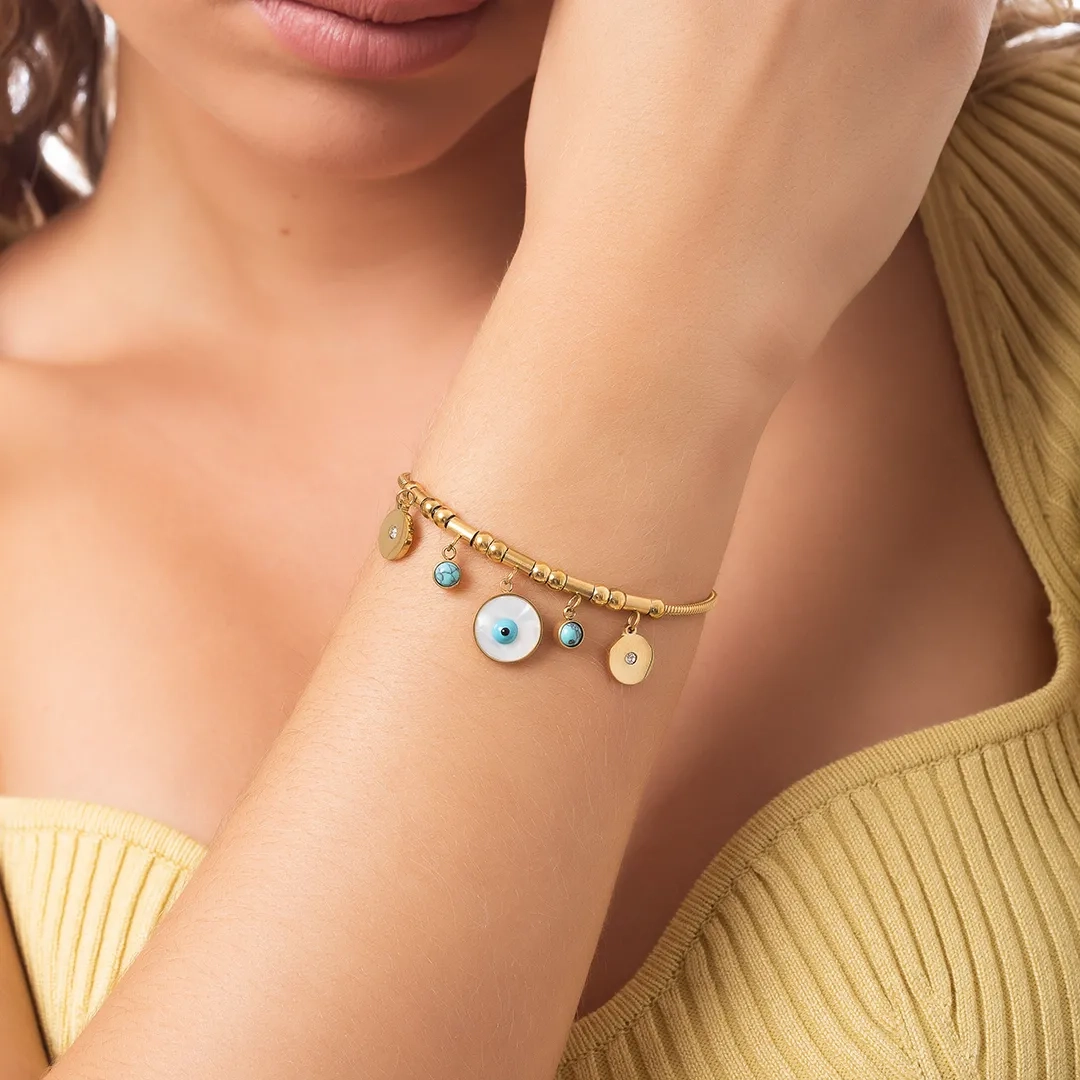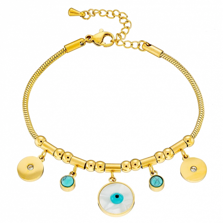 Oxzen ατσάλινο βραχιόλι επιχρυσωμένο με ματάκια και στοιχεία