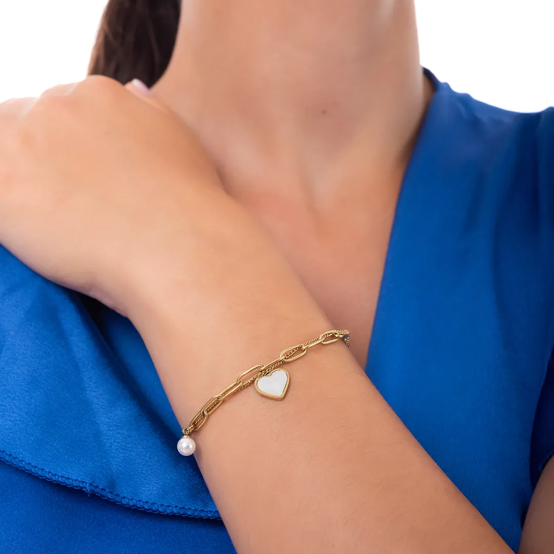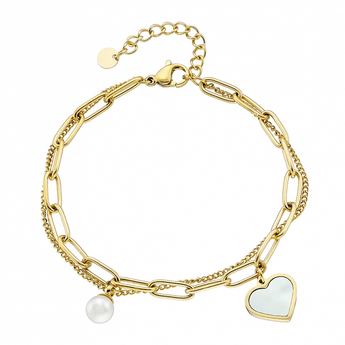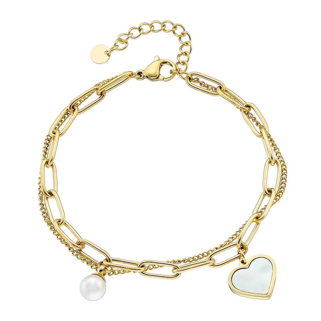 Oxzen ατσάλινο βραχιόλι με διπλή αλυσίδα και κρεμαστή καρδιά