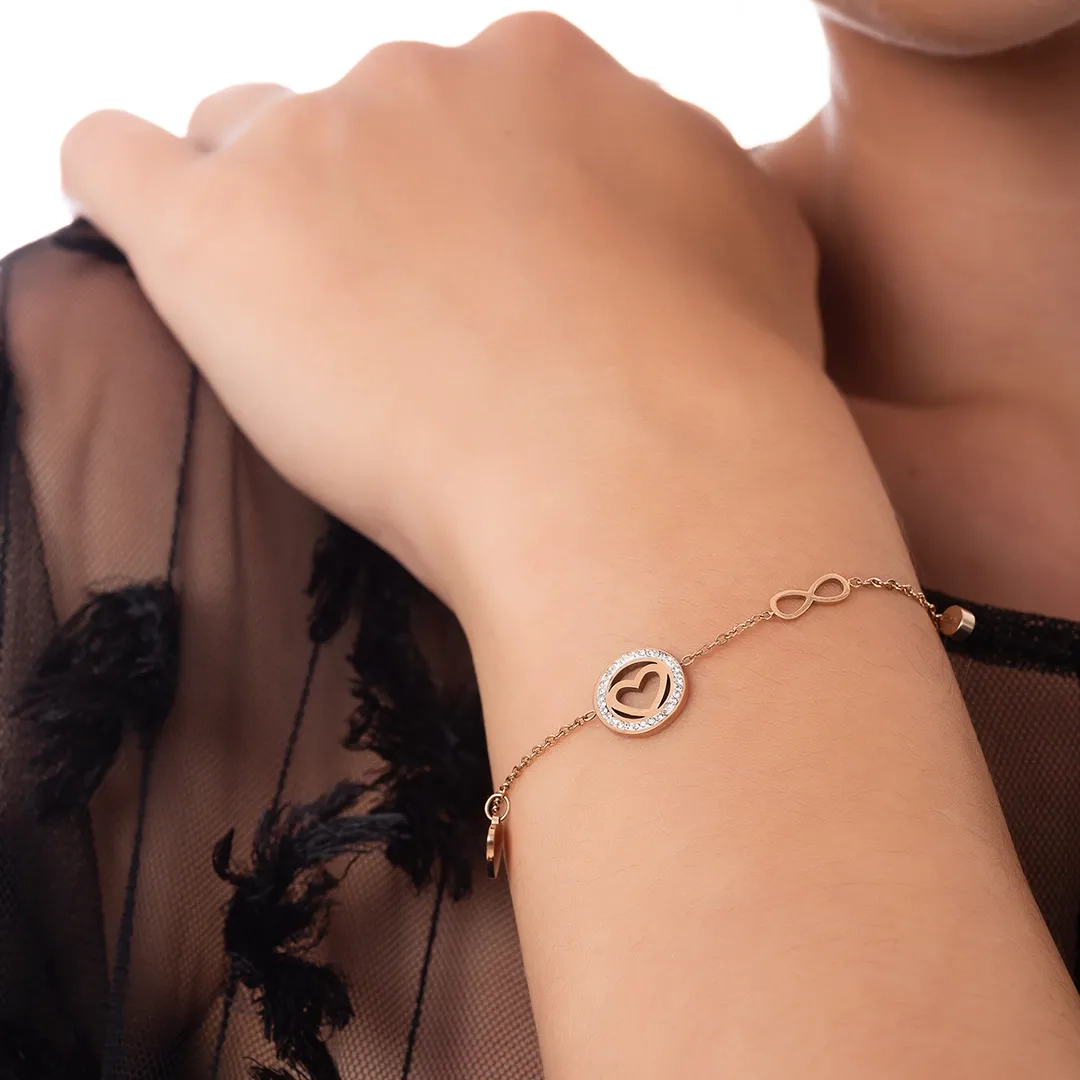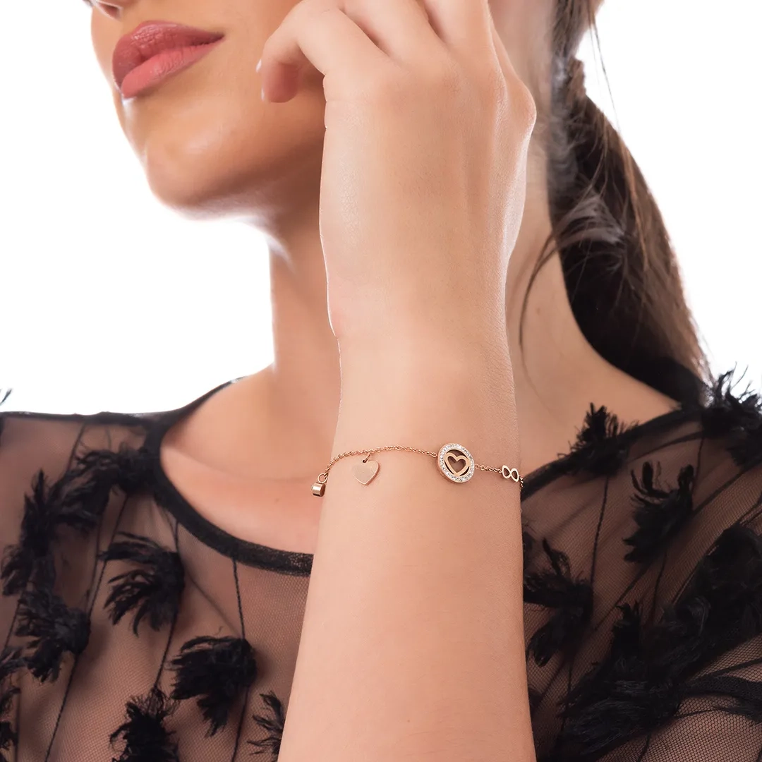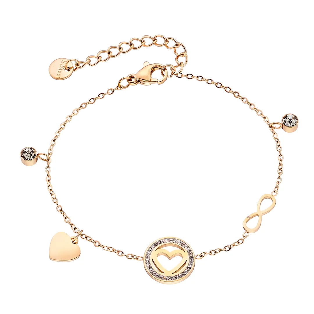 Oxzen ατσάλινο βραχιόλι με καρδιά και κρεμαστά στοιχεία