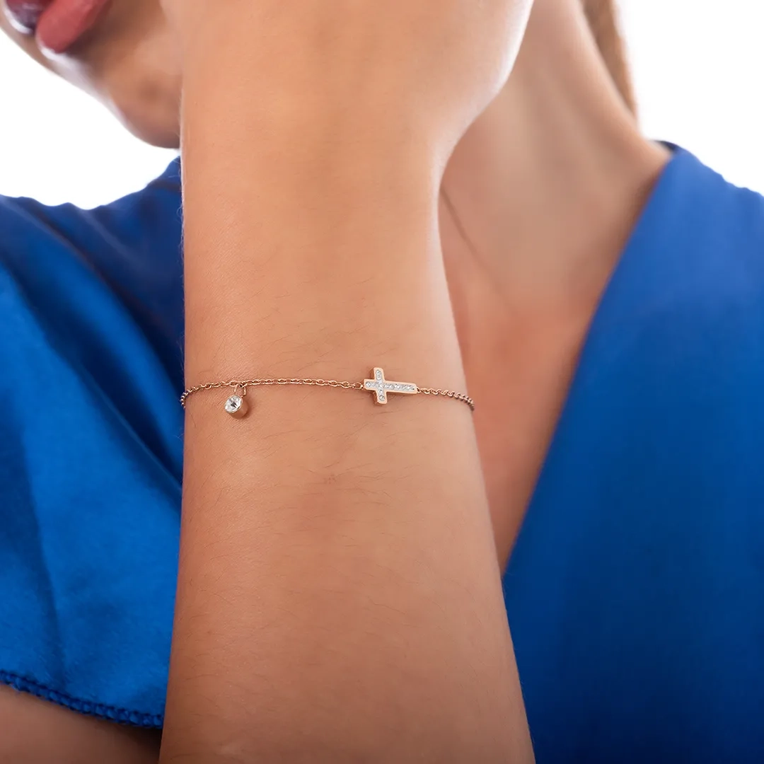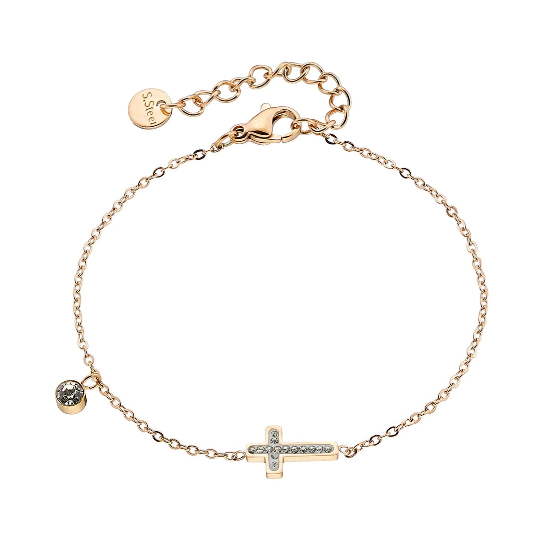 Oxzen ατσάλινο βραχιόλι με σταυρό και λευκά κρύσταλλα