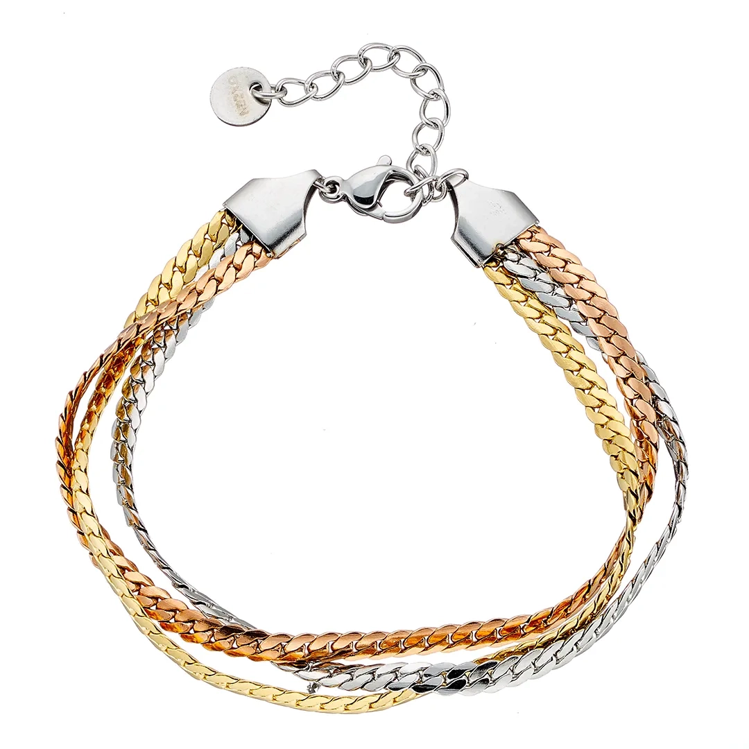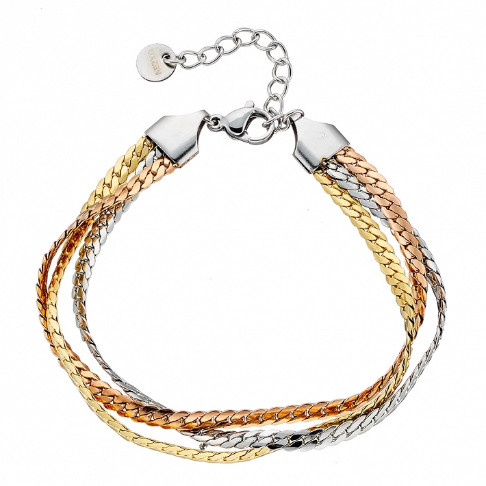 Oxzen ατσάλινο βραχιόλι με τριπλή αλυσίδα ασημί-χρυσό-ροζ