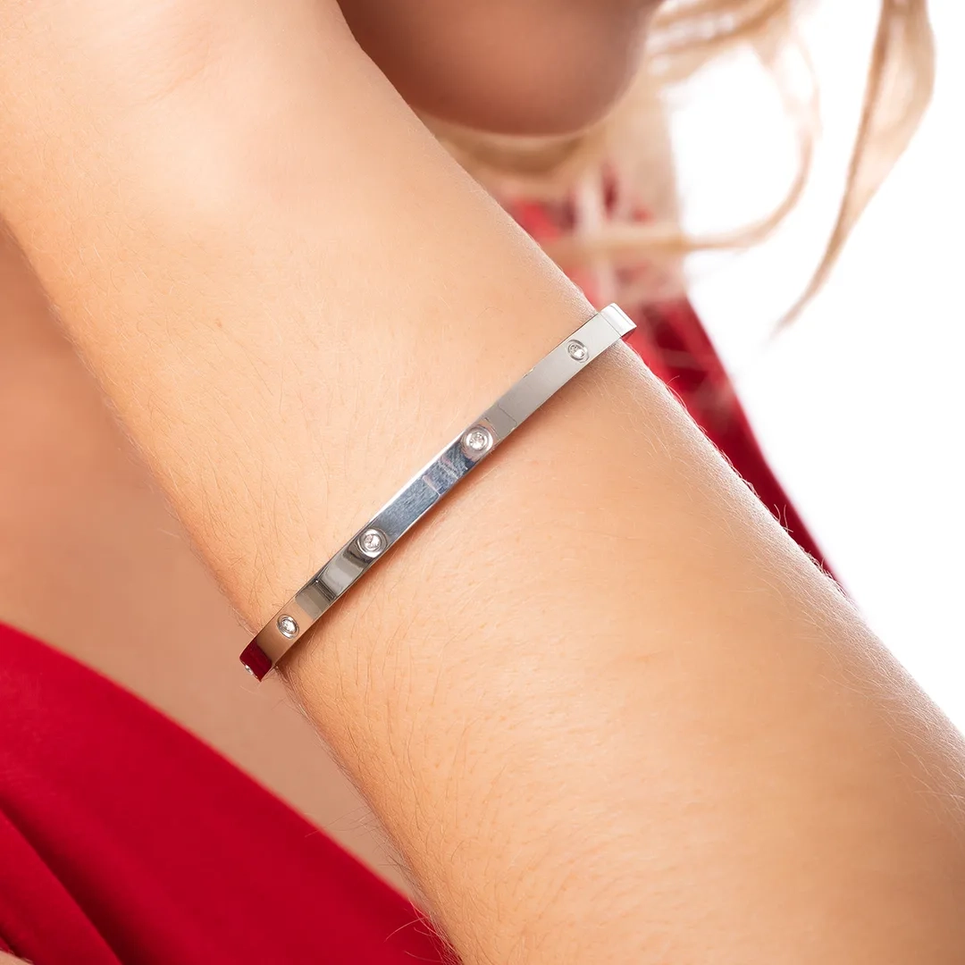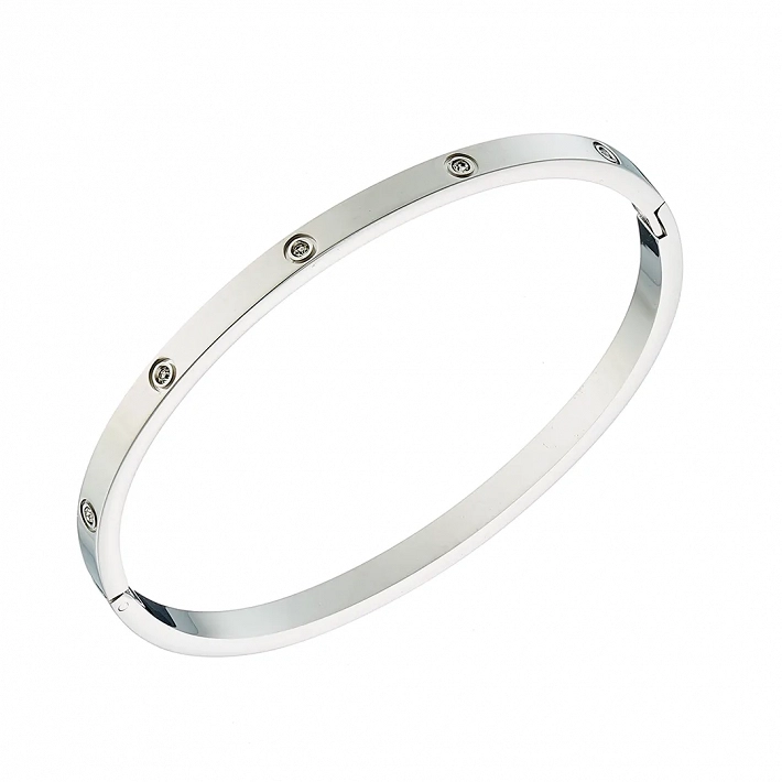 Oxzen ατσάλινο βραχιόλι σταθερό με λευκά ζιργκόν
