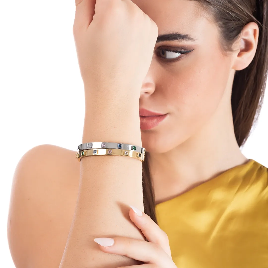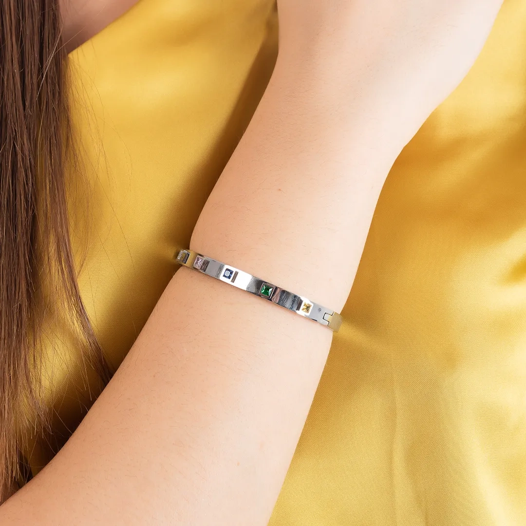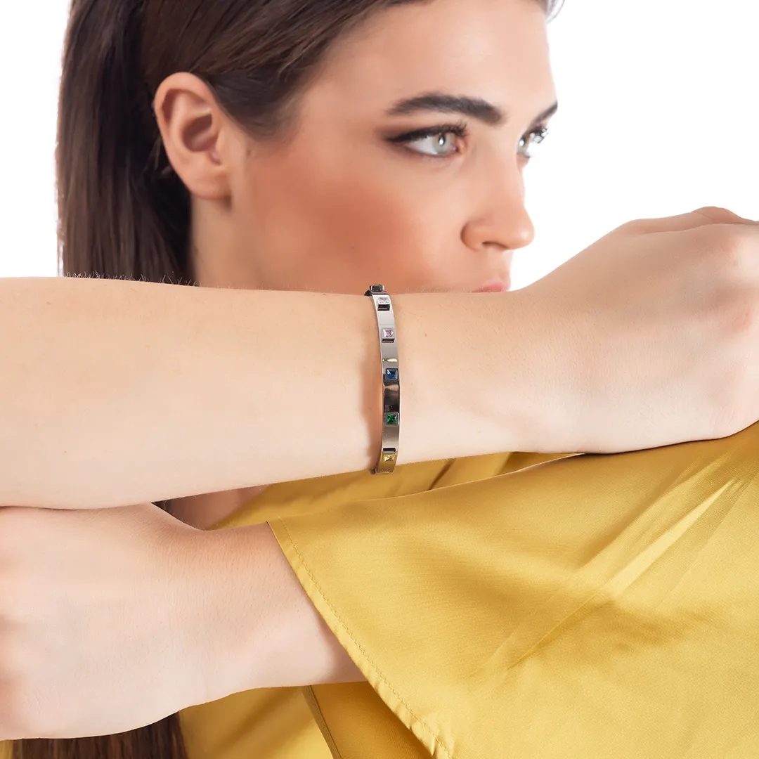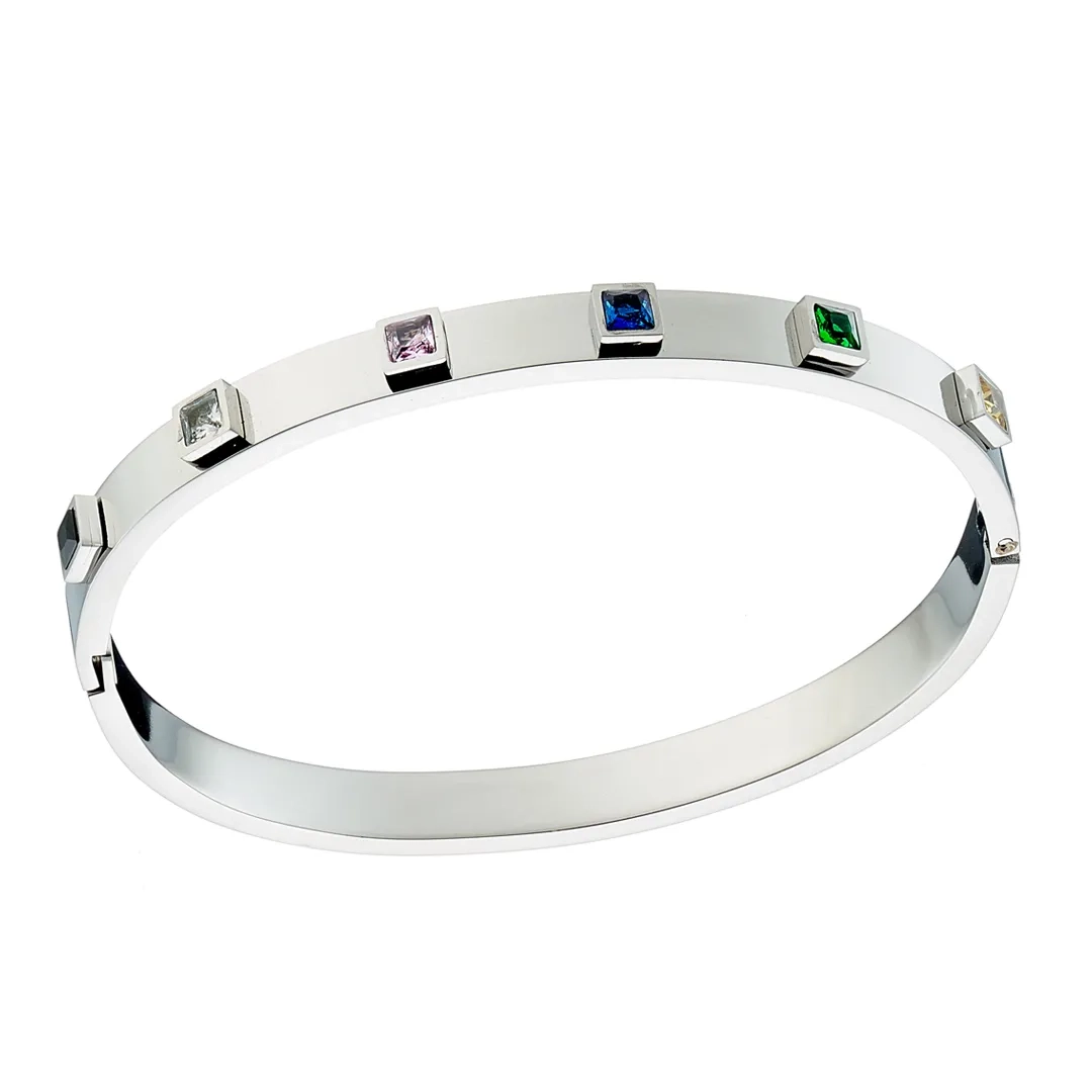 Oxzen ατσάλινο βραχιόλι σταθέρο με τετράγωνα χρωματιστά ζιργκόν