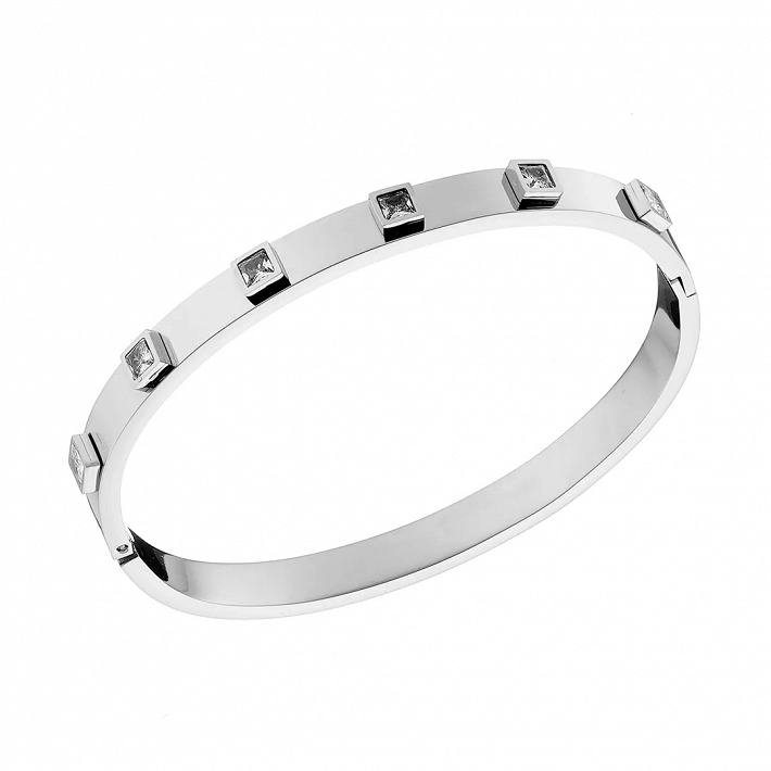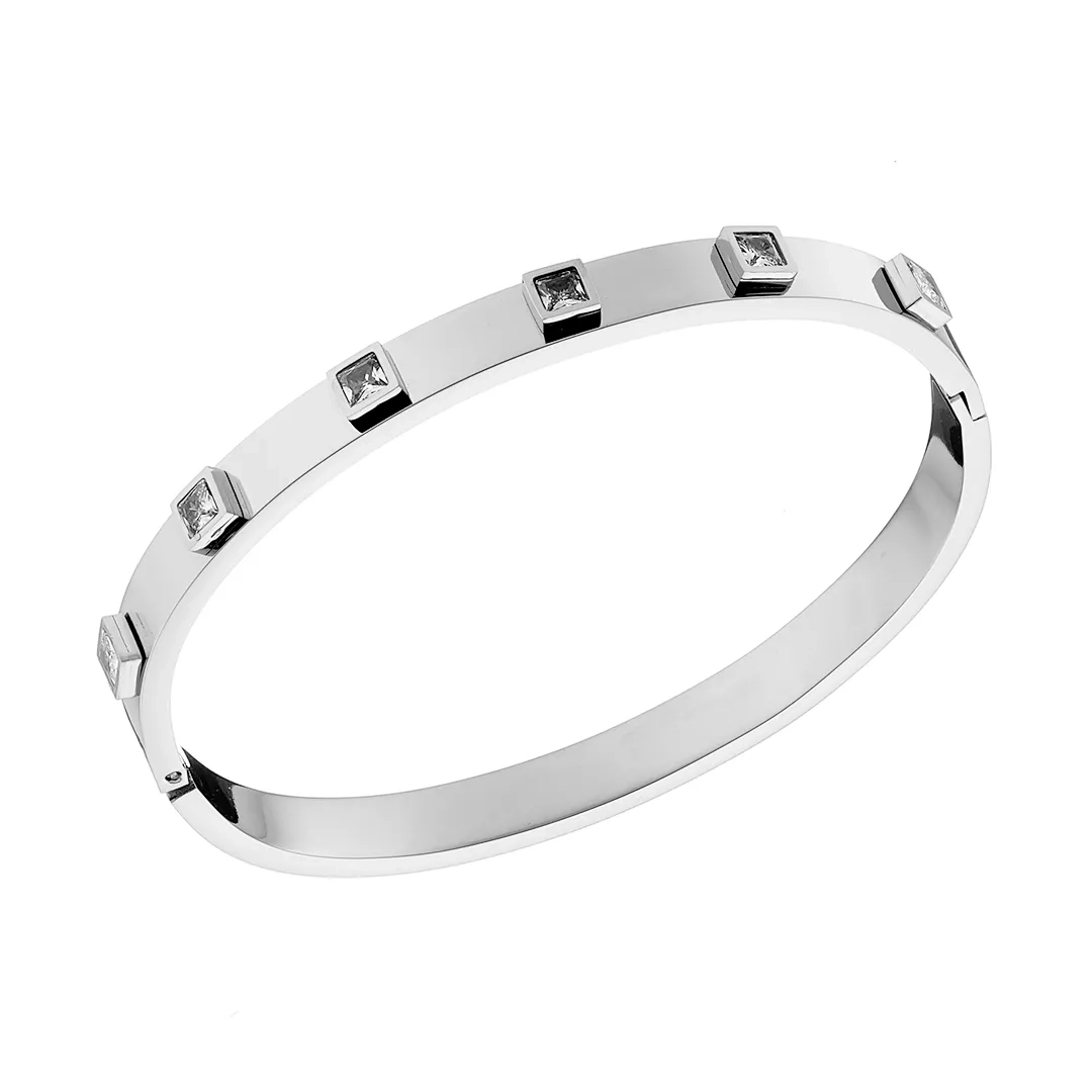 Oxzen ατσάλινο βραχιόλι σταθερό με τετράγωνα λευκά ζιργκόν