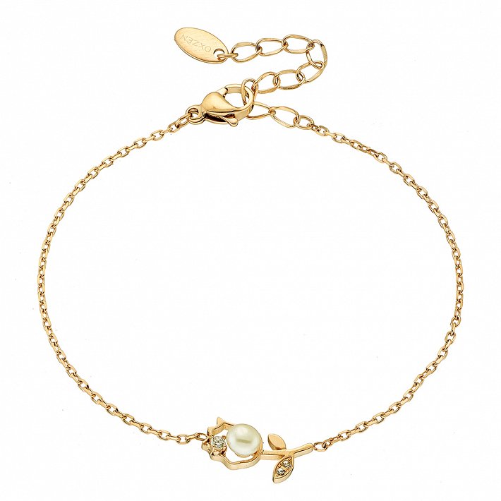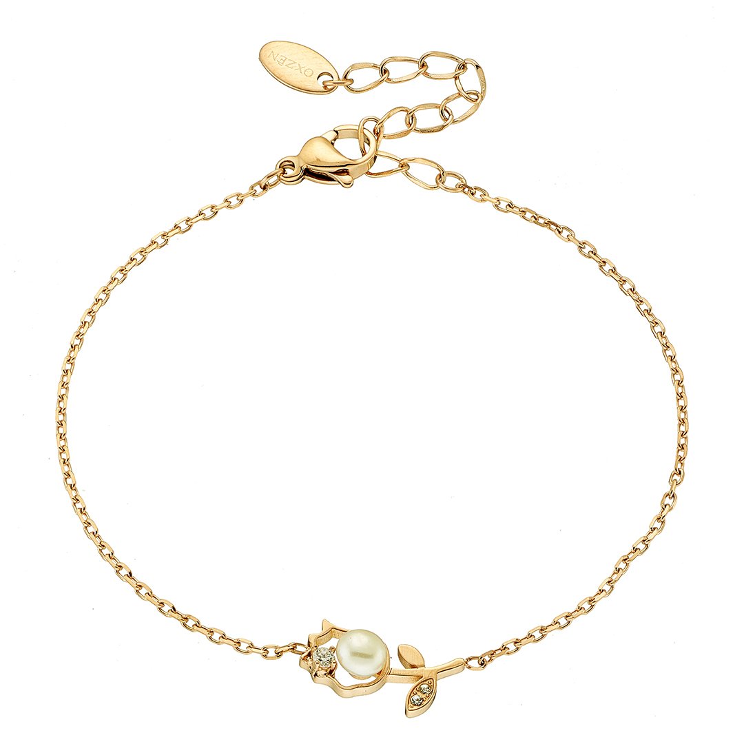 Oxzen ατσάλινο βραχιόλι τριαντάφυλλο με πέρλα