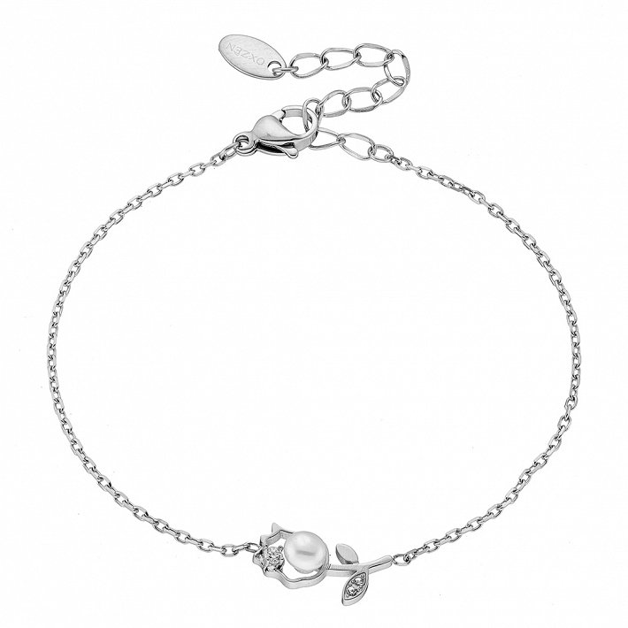 Oxzen ατσάλινο βραχιόλι τριαντάφυλλο με πέρλα