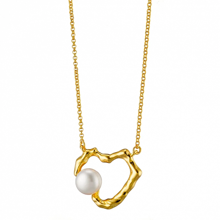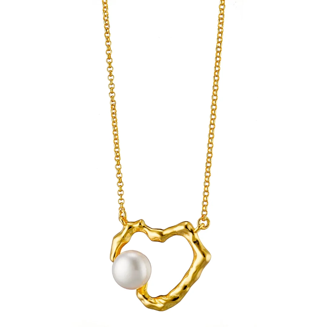 Oxzen χειροπόιητο γυναικείο κολιέ ασημένιο καρδιά με πέρλα