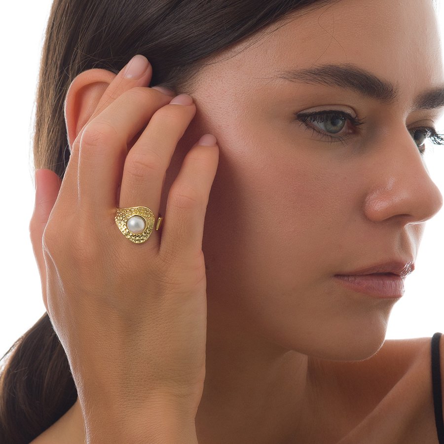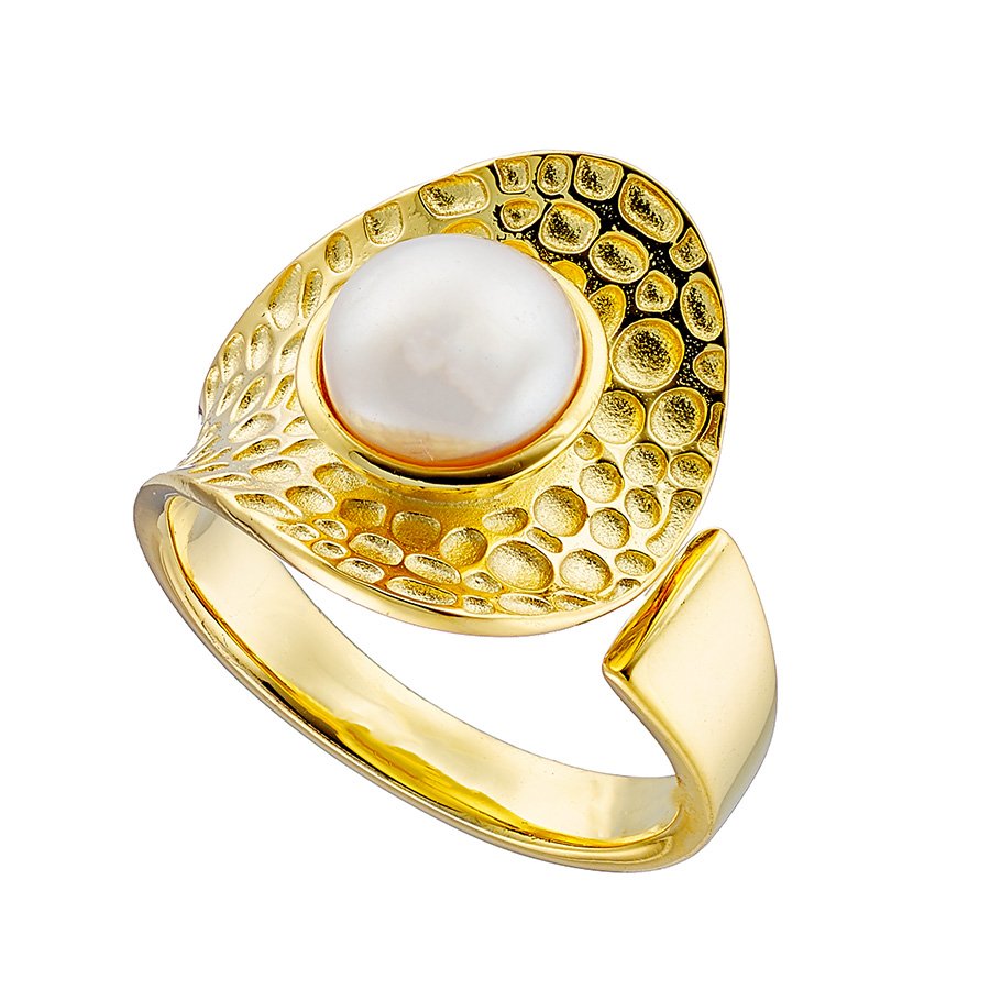 Oxzen δαχτυλίδι ασημένιο χειροποίητο με πέρλα free size