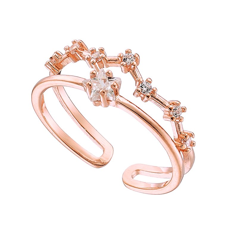 Oxzen δαχτυλίδι ασημένιο διπλό με λευκά ζιργκόν free size