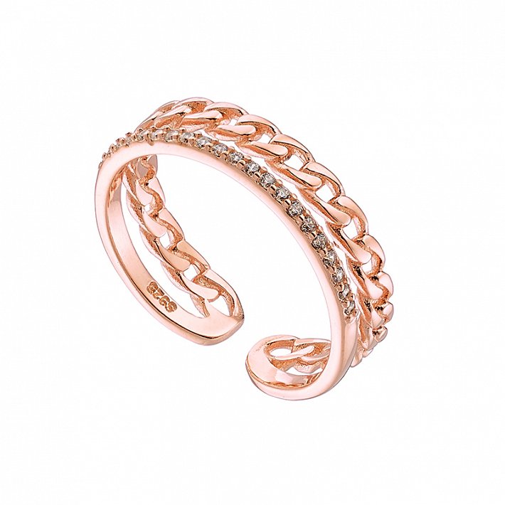 Oxzen δαχτυλίδι ασημένιο διπλό σειρέ με λευκά ζιργκόν free size