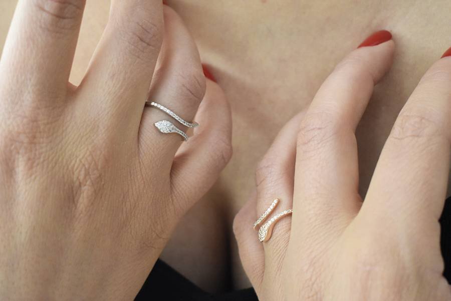 Oxzen δαχτυλίδι ασημένιο φίδι με ζιργκόν free size