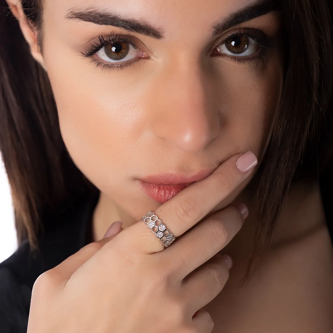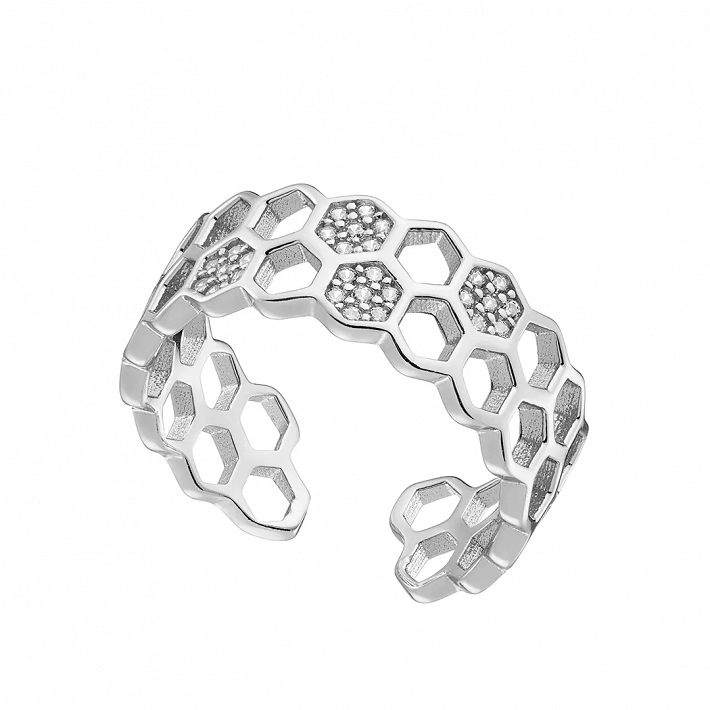 Oxzen δαχτυλίδι ασημένιο free size με λευκά ζιργκόν