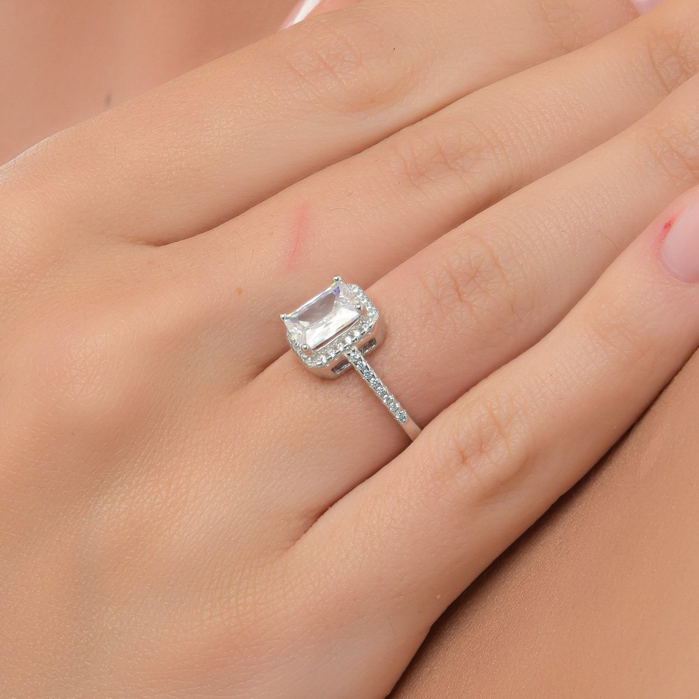 Oxzen δαχτυλίδι ασημένιο καρέ μονόπετρο με λευκά ζιργκόν