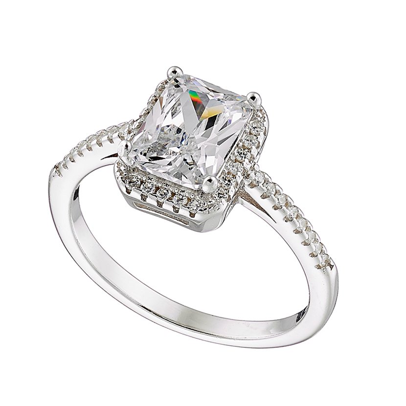 Oxzen δαχτυλίδι ασημένιο καρέ μονόπετρο με λευκά ζιργκόν