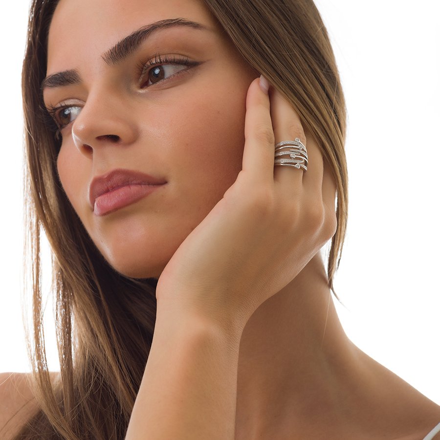 Oxzen δαχτυλίδι ασημένιο με λευκά ζιργκόν
