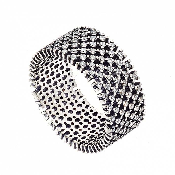 Oxzen δαχτυλίδι ασημένιο με λευκά ζιργκόν