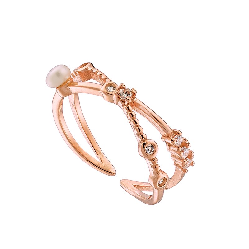 Oxzen δαχτυλίδι ασημένιο με πέρλα και λευκά ζιργκόν