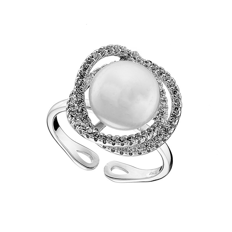 Oxzen δαχτυλίδι ασημένιο με πέρλα majorica free size