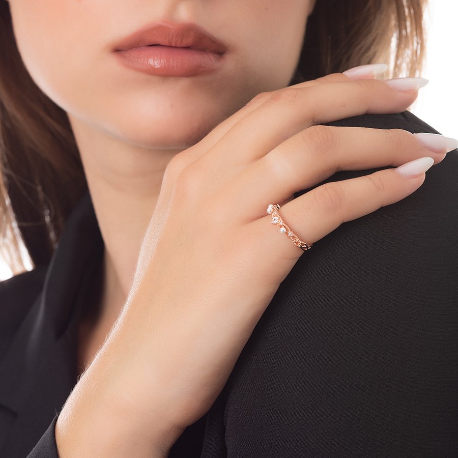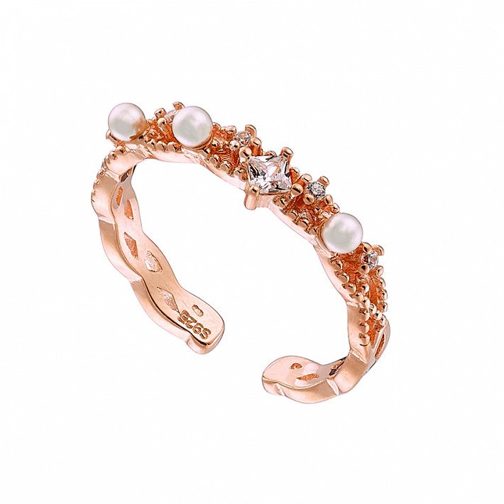 Oxzen δαχτυλίδι ασημένιο με περλίτσες και λευκά ζιργκόν free size