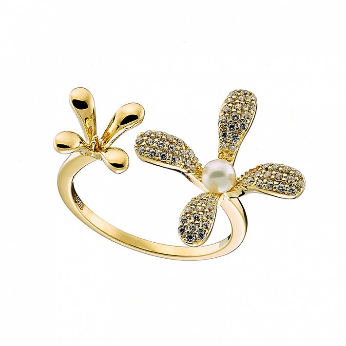 Oxzen δαχτυλίδι ασημένιο με ζιργκόν λουλούδι και πέρλα free size